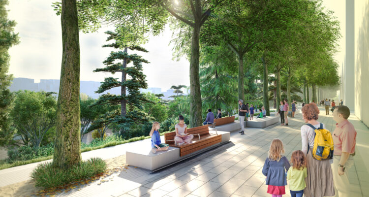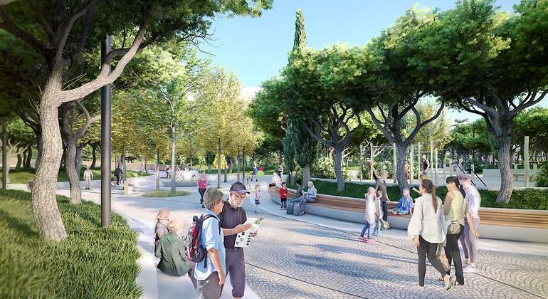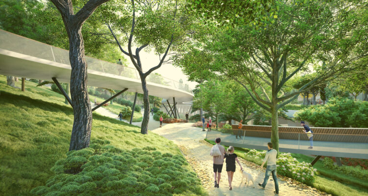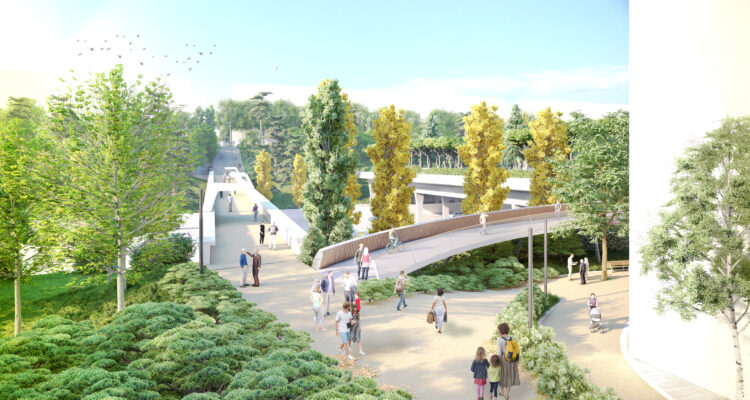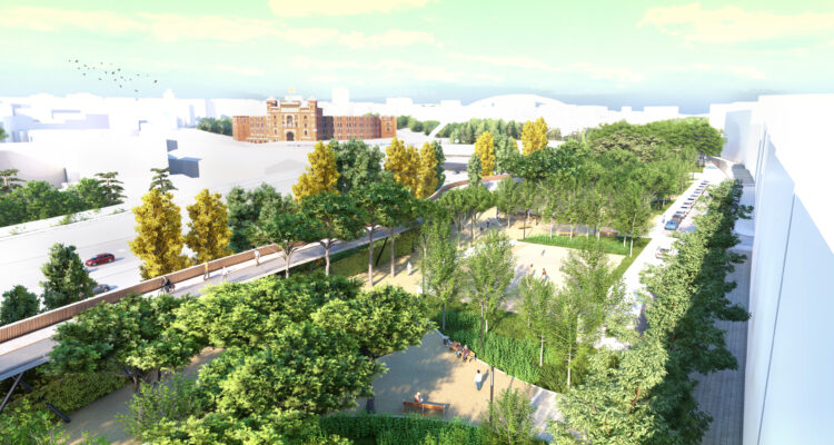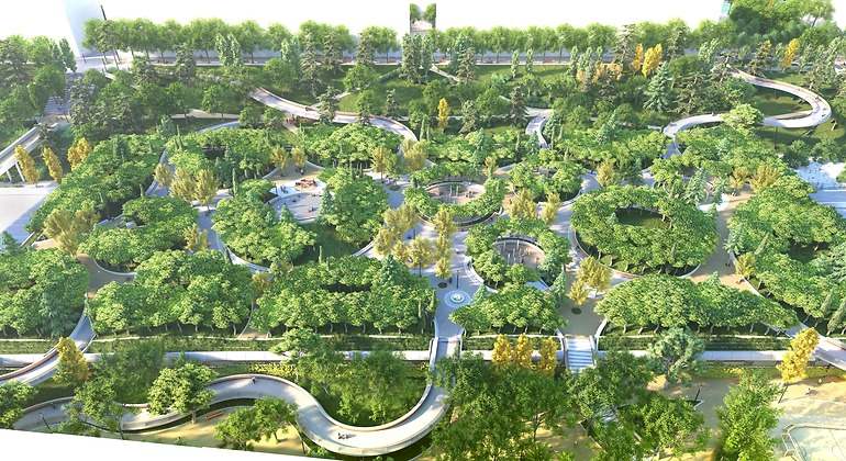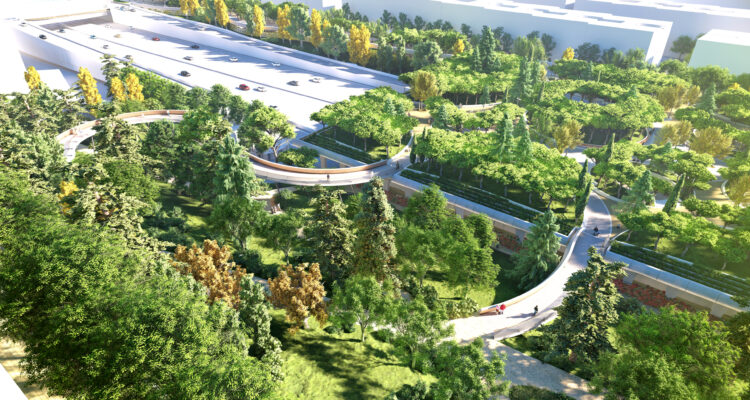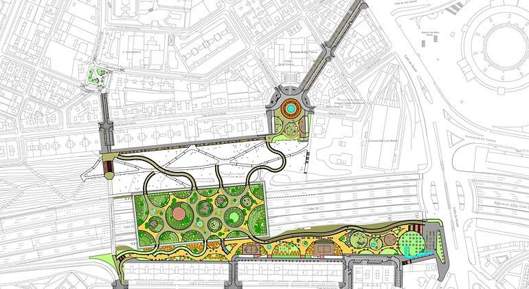 Este espacio conectará las dos orillas de la carretera de circunvalación a través de ocho pasarelas y contará con zonas peatonales, ajardinadas y estanciales en las que se plantarán 591 nuevos árboles y más de 48.800 arbustos. Además, habrá más de 2.150 metros cuadrados de praderas y se instalarán juegos infantiles, equipamientos de calistenia, una pequeña zona de actuaciones al aire libre con un graderío de poca altura, dos kioscos, fuentes, bancos y papeleras.