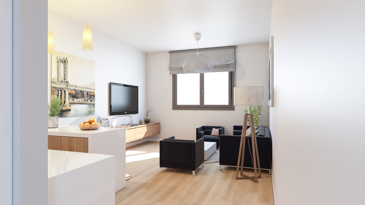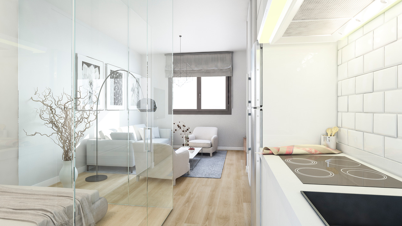 Las cocinas se entregarán amuebladas con muebles altos y bajos. Incluirá: Placa de inducción, horno, grupo filtrante para extracción y fregadero con grifería de acero inoxidable.