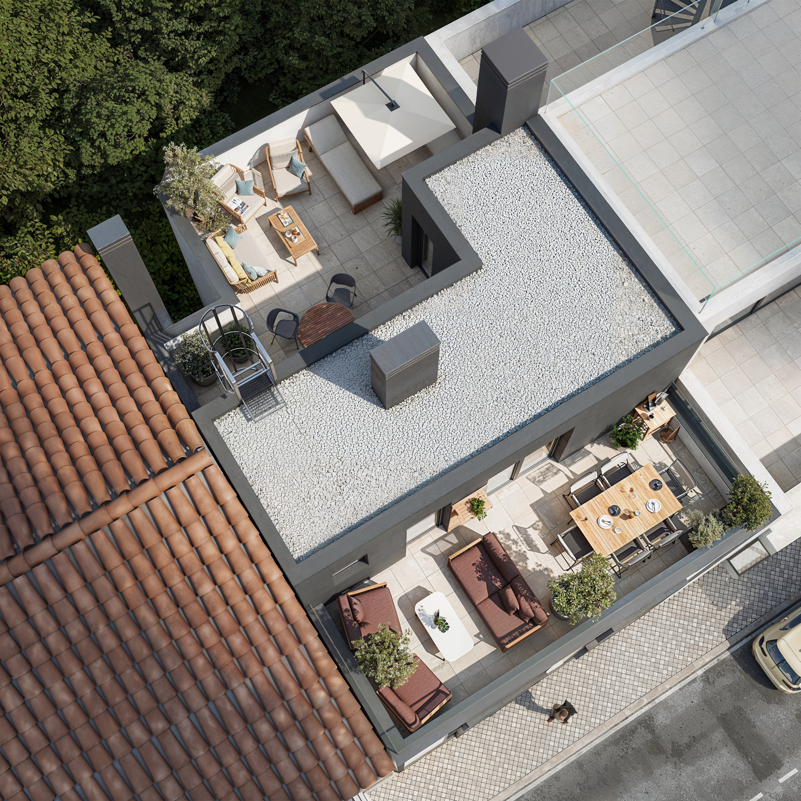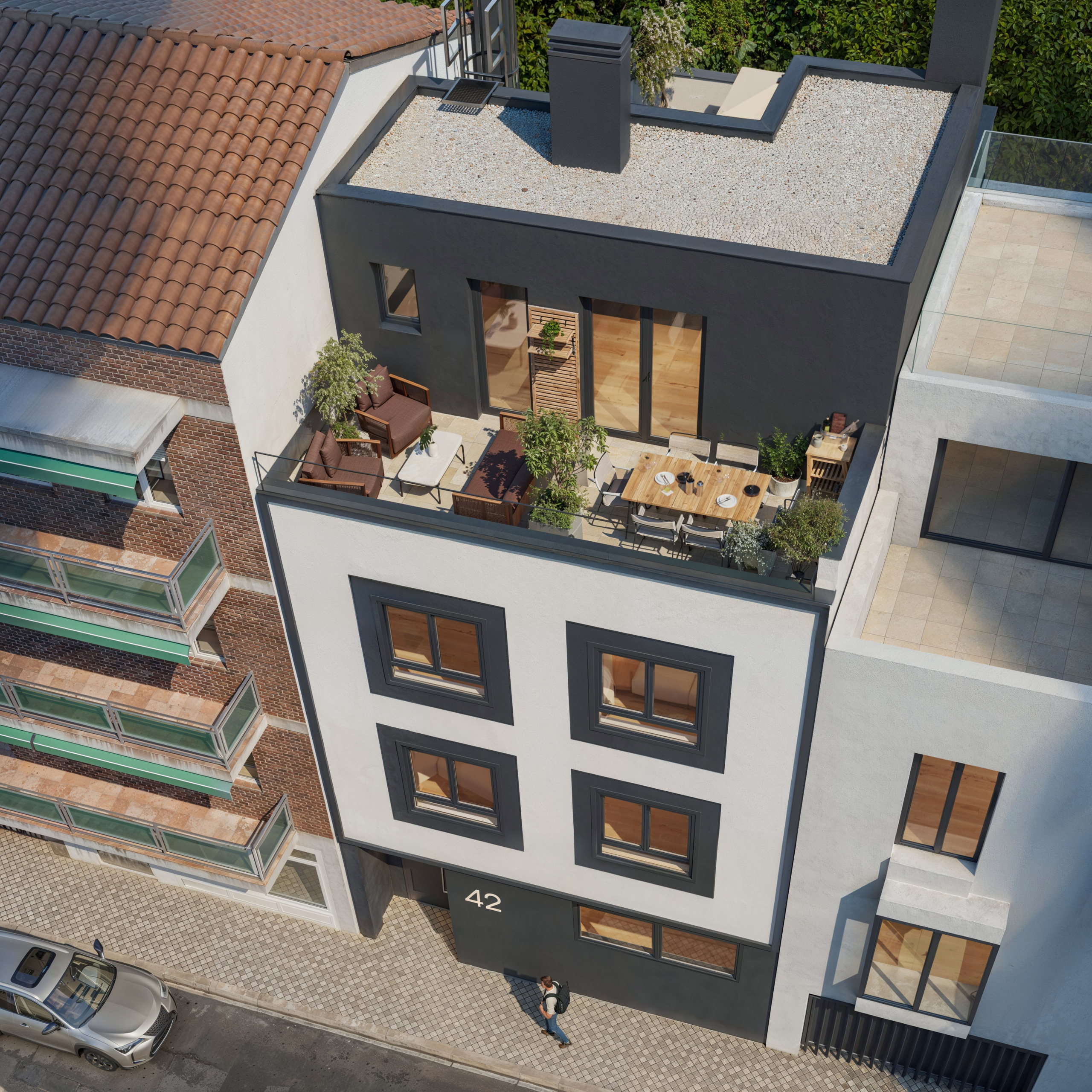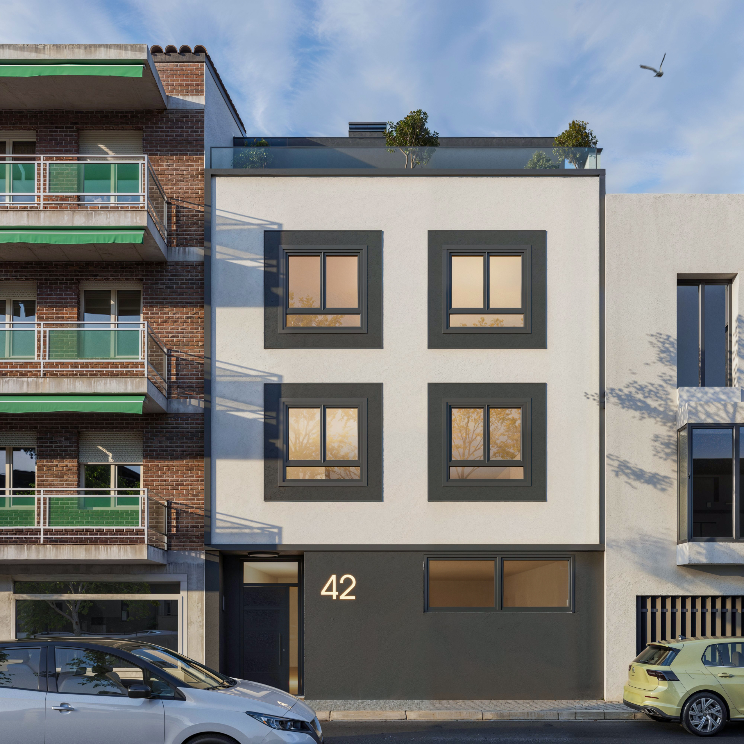 Boss Inmobiliaria comercializa el proyecto Germán Pérez Carrasco, 42 consta de 5 viviendas de 1 dormitorio, áticos con amplias terrazas y vivienda en planta baja con jardín privado.